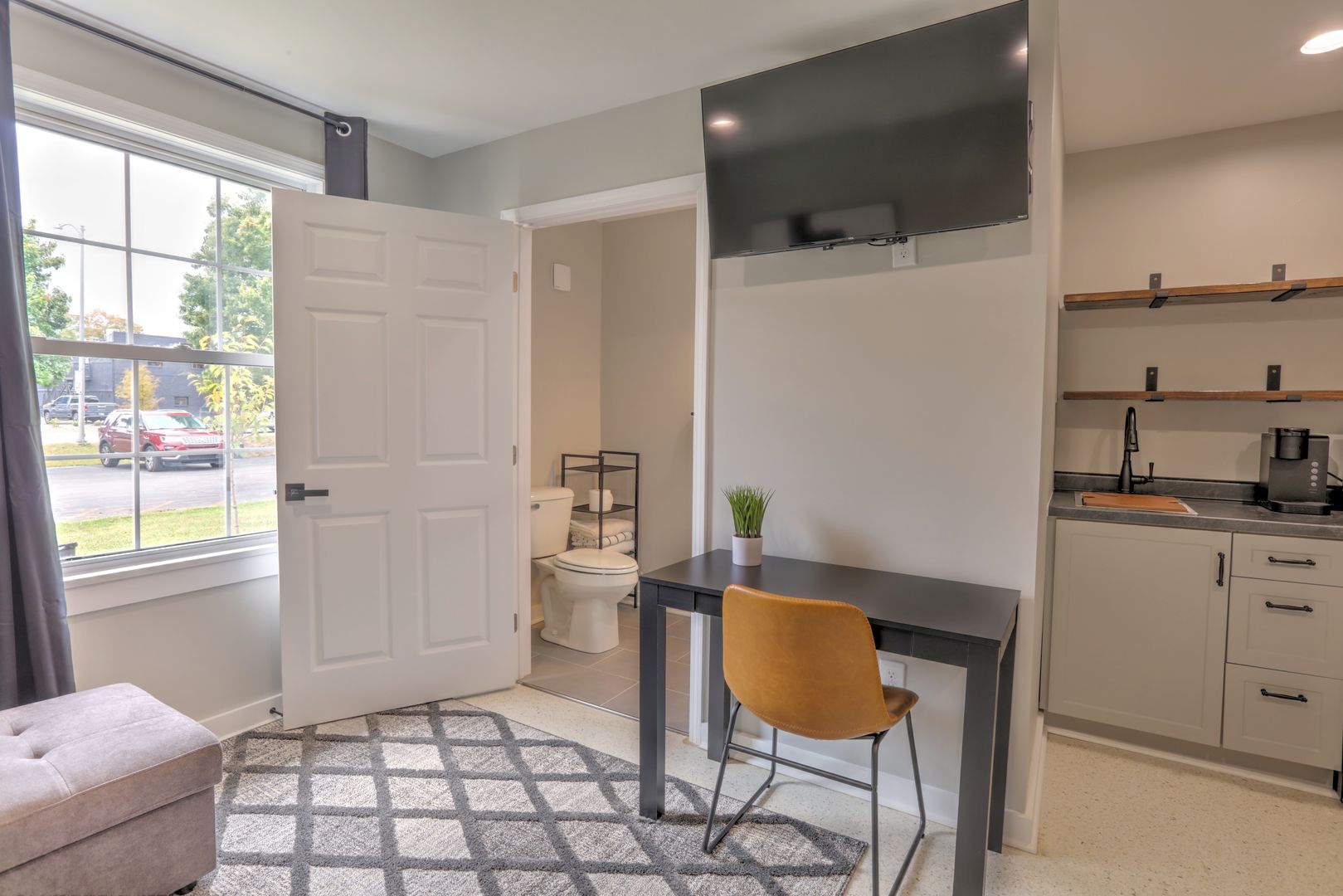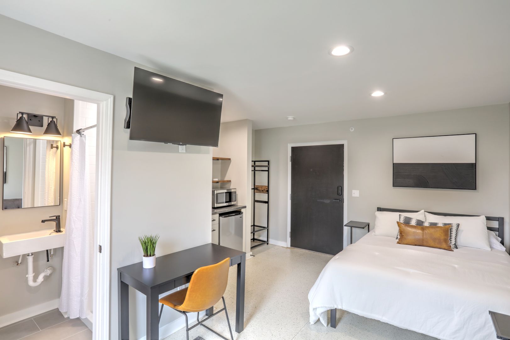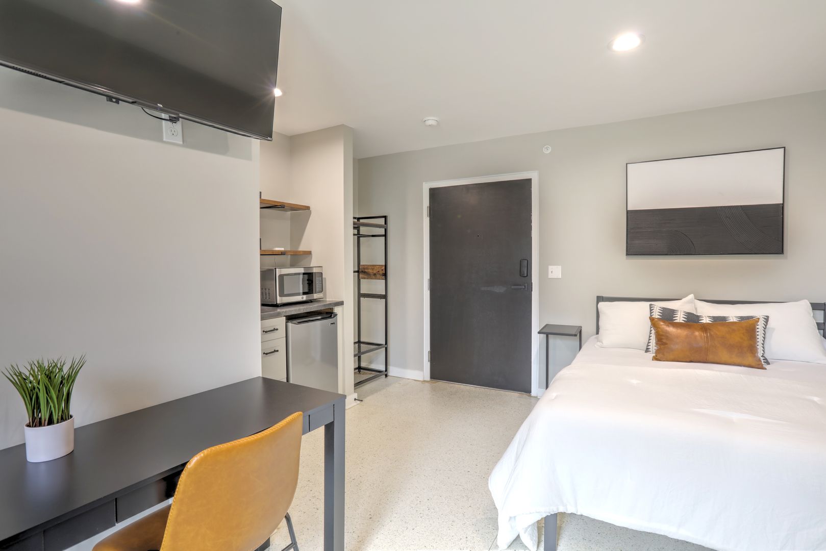 VELO Lexington offers fully furnished, newly renovated short-term rental studio apartments minutes from The University of Kentucky and major hospitals! We are a bicycle-friendly community near St. Joseph Hospital, UK Chandler Medical Center, Baptist Health, the VA Hospital, parks, dining, and more! We offer a keyless, smart lock entry and a full-service online portal system for effortless payment and maintenance management accessibility available 24/7!